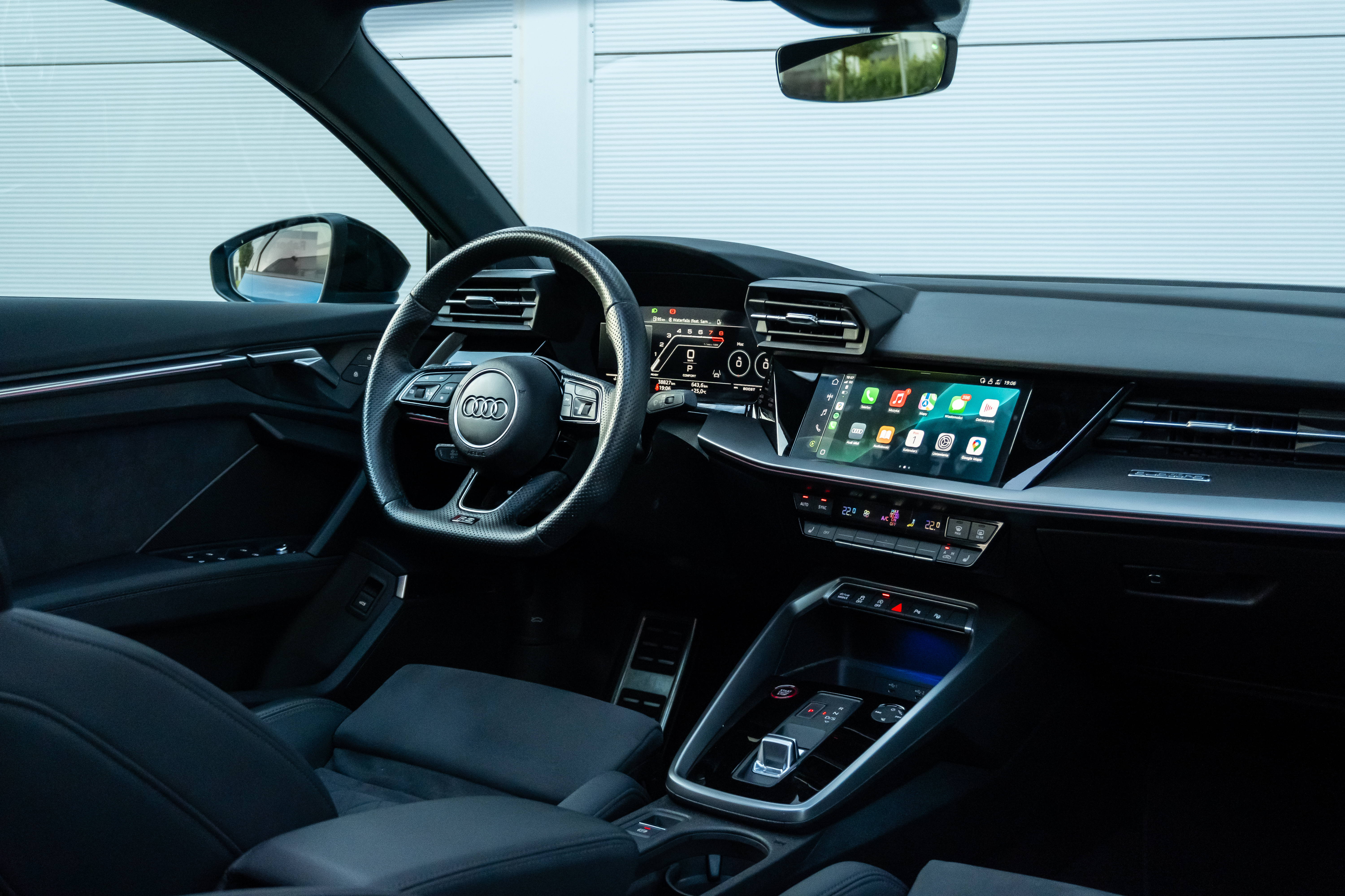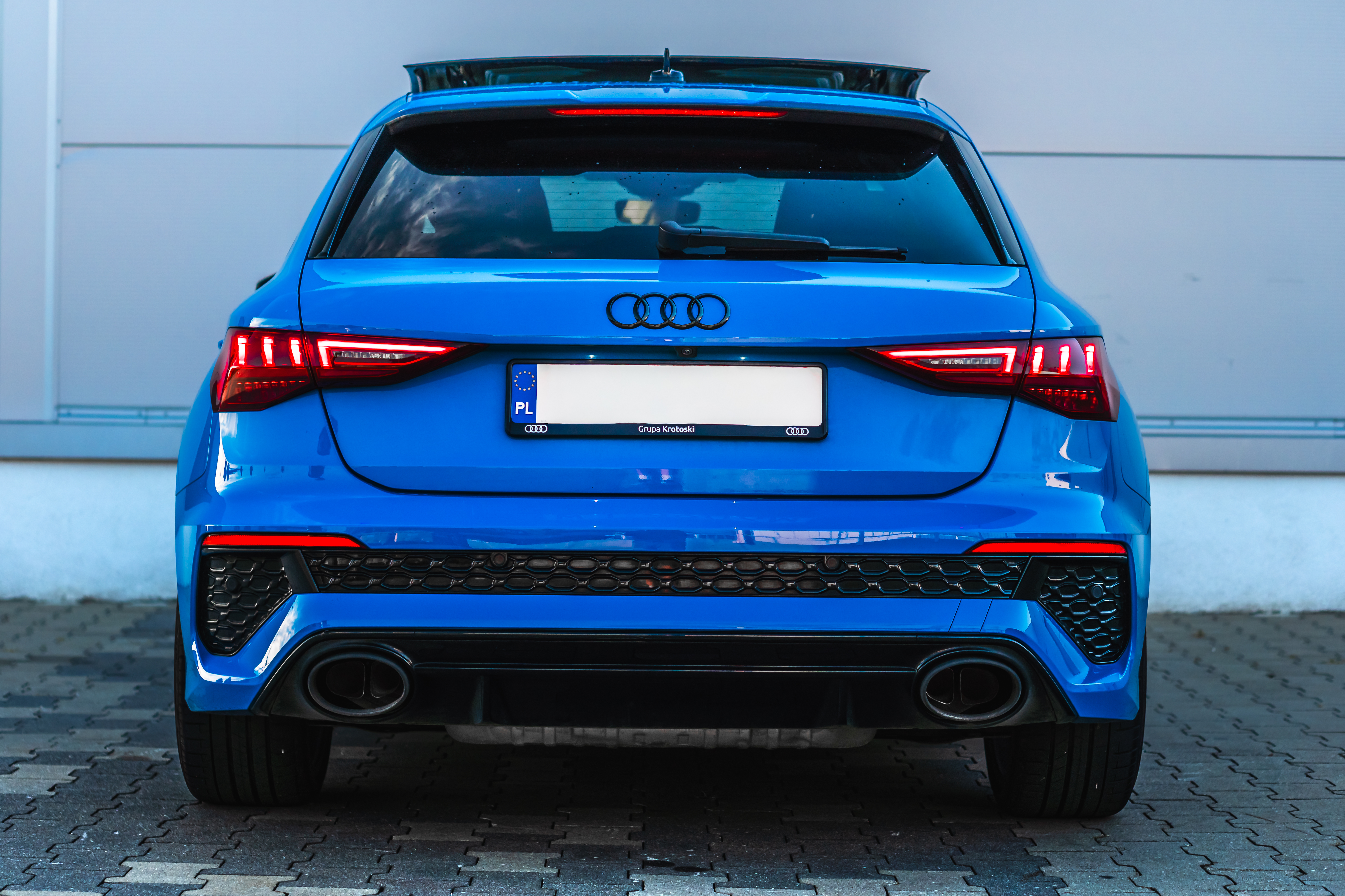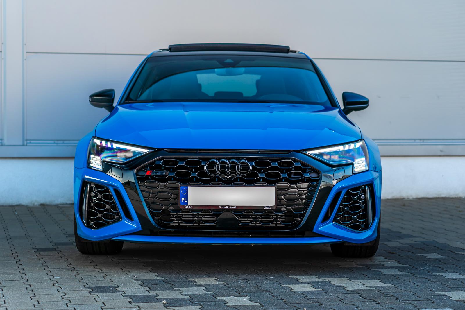 Audi RS3 Quattro 8Y to kompaktowy samochód sportowy klasy premium, który oferuje wyjątkowe osiągi i charakterystyczny, agresywny design. Auto napędzane jest legendarnym 5-cylindrowym silnikiem 2.5 TFSI o mocy 400 KM, co pozwala na przyspieszenie od 0 do 100 km/h w zaledwie 3,8 sekundy. Napęd na cztery koła Quattro zapewnia doskonałą trakcję i stabilność nawet w trudnych warunkach. RS3 8Y wyposażone jest w nowoczesne technologie, w tym cyfrowy kokpit, system multimedialny z Apple CarPlay i Android Auto, adaptacyjne zawieszenie oraz zaawansowane systemy bezpieczeństwa. Wnętrze wykończone jest materiałami wysokiej jakości, a sportowe fotele gwarantują komfort i odpowiednie podparcie podczas dynamicznej jazdy. Audi RS3 8Y to idealny wybór dla osób poszukujących auta o najwyższych osiągach, niepowtarzalnym brzmieniu i luksusowym charakterze, które sprawdzi się zarówno na co dzień, jak i podczas wyjątkowych okazji.