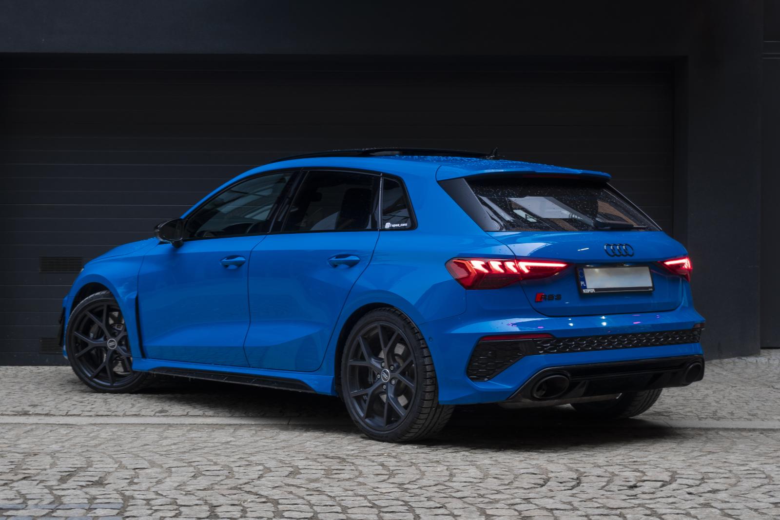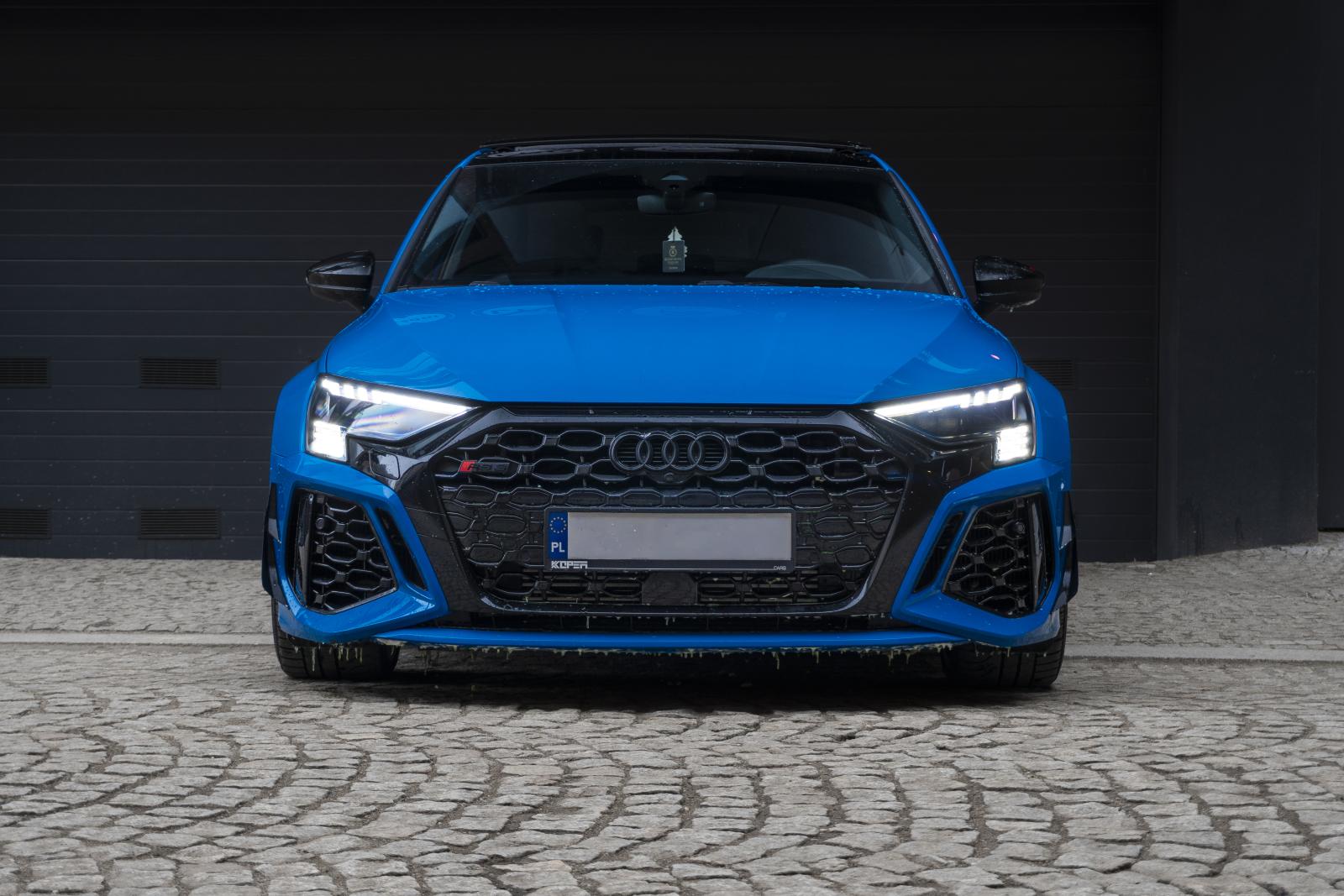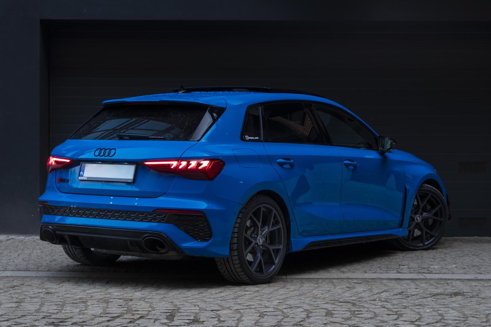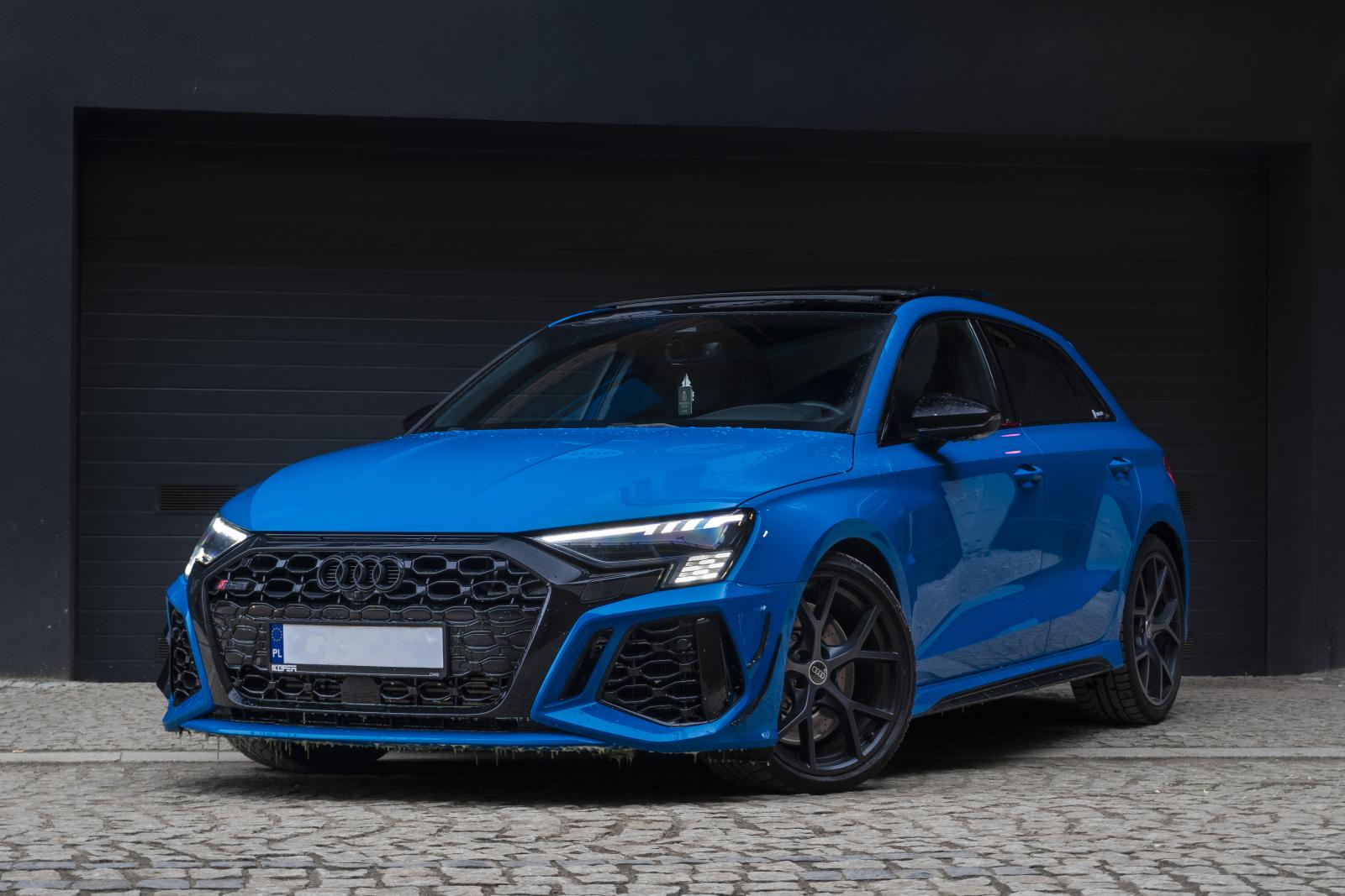 Audi RS3 Quattro 8Y to kompaktowy samochód sportowy klasy premium, który oferuje wyjątkowe osiągi i charakterystyczny, agresywny design. Auto napędzane jest legendarnym 5-cylindrowym silnikiem 2.5 TFSI o mocy 400 KM, co pozwala na przyspieszenie od 0 do 100 km/h w zaledwie 3,8 sekundy. Napęd na cztery koła Quattro zapewnia doskonałą trakcję i stabilność nawet w trudnych warunkach. RS3 8Y wyposażone jest w nowoczesne technologie, w tym cyfrowy kokpit, system multimedialny z Apple CarPlay i Android Auto, adaptacyjne zawieszenie oraz zaawansowane systemy bezpieczeństwa. Wnętrze wykończone jest materiałami wysokiej jakości, a sportowe fotele gwarantują komfort i odpowiednie podparcie podczas dynamicznej jazdy. Audi RS3 8Y to idealny wybór dla osób poszukujących auta o najwyższych osiągach, niepowtarzalnym brzmieniu i luksusowym charakterze, które sprawdzi się zarówno na co dzień, jak i podczas wyjątkowych okazji.