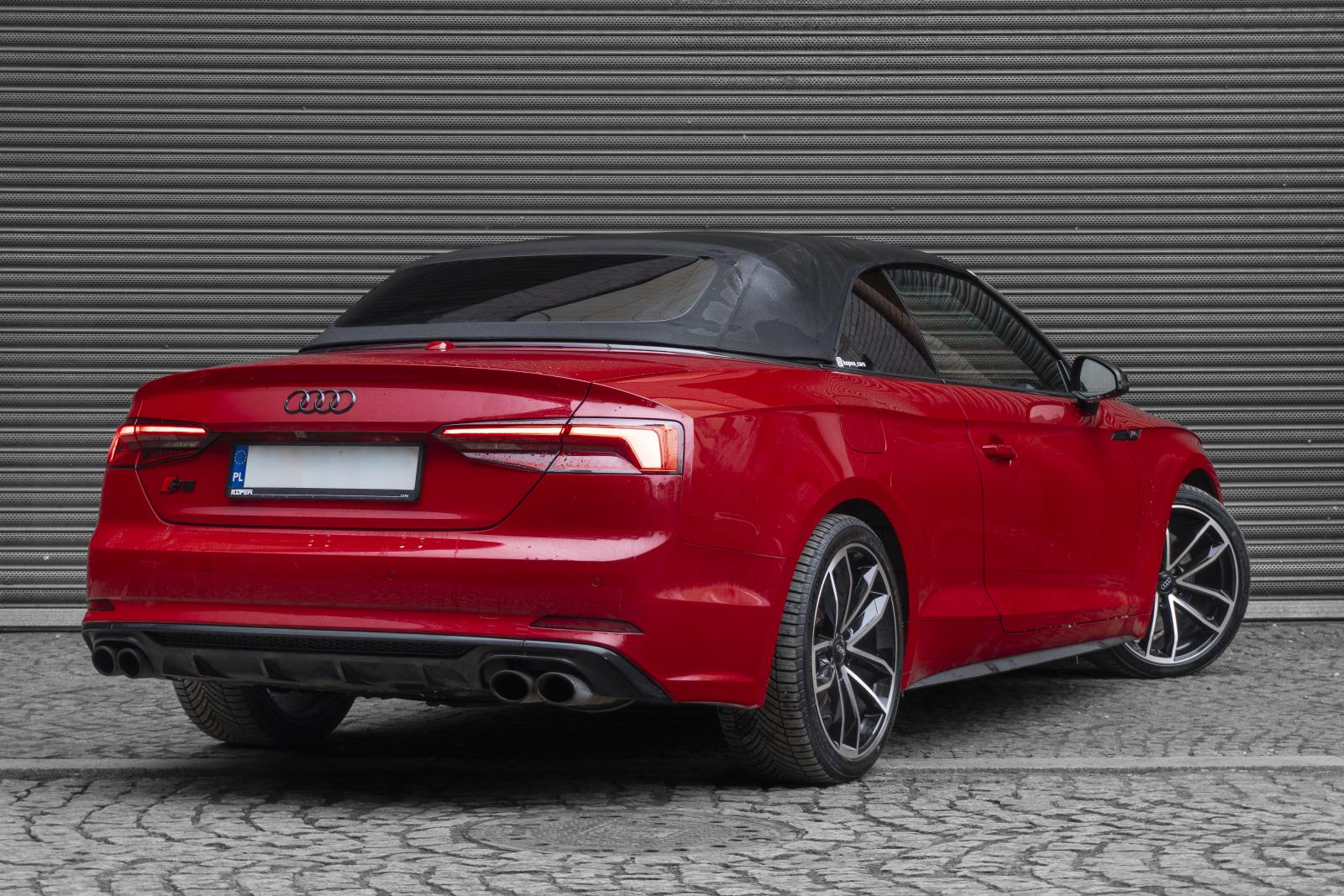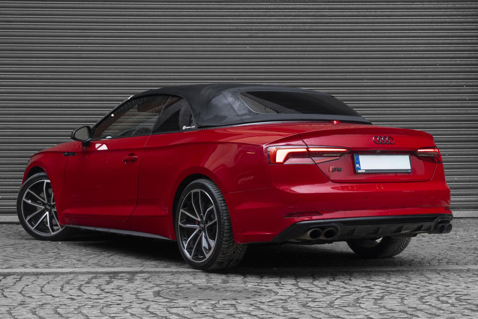 Poczuj wolność, jakiej nie daje żaden inny samochód. Nasze Audi S5 Cabrio 2019 to perfekcyjne połączenie sportowych osiągów i luksusu klasy premium. Pod maską pracuje silnik 3.0 TFSI V6 o mocy 349 KM, który w duecie z napędem quattro i 8-biegową skrzynią Tiptronic zapewnia przyspieszenie 0–100 km/h w zaledwie 4,9 sekundy.